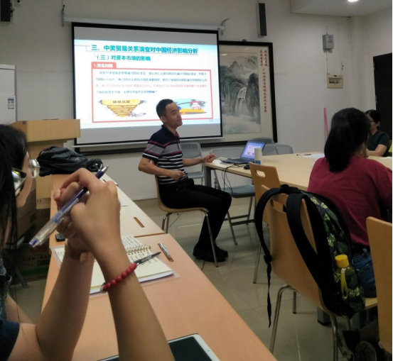 讲座开始前,康锋莉教授向营员介绍了陈和教授的研究方向与研究成果,使营员们对陈和教授有了初步了解。随后,陈和教授展开了以《中美贸易关系的演变及对中国经济影响分析》为题的专题讲座。