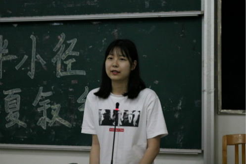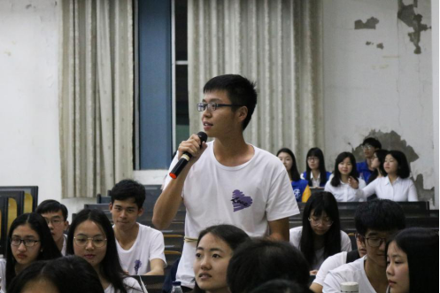 紧接着,去年“乡遇”队长刘莹和去年“新晴之约”队长陈嘉敏分别上台分享他们去年三下乡的经验。对于义教组,刘莹认为课程设置不仅要比例适当,还应具有趣味性,可以通过开设特色课程、组织有意义的活动来辅助教学。对于后勤组,她的建议是多设立团体游戏,同时充分考虑学生的条件;落实物资购买,并制定合适的财务制度。陈嘉敏队长在之后的发言中同样肯定了设立创新型课程的重要性,还为我们展示了去年开设的一些特色课程,如辩论和时事分析,开拓同学们的思维。除此之外,她还倡导制度创新,强调调研方案的可行性,帮助同学们更进一步了解三下乡活动。