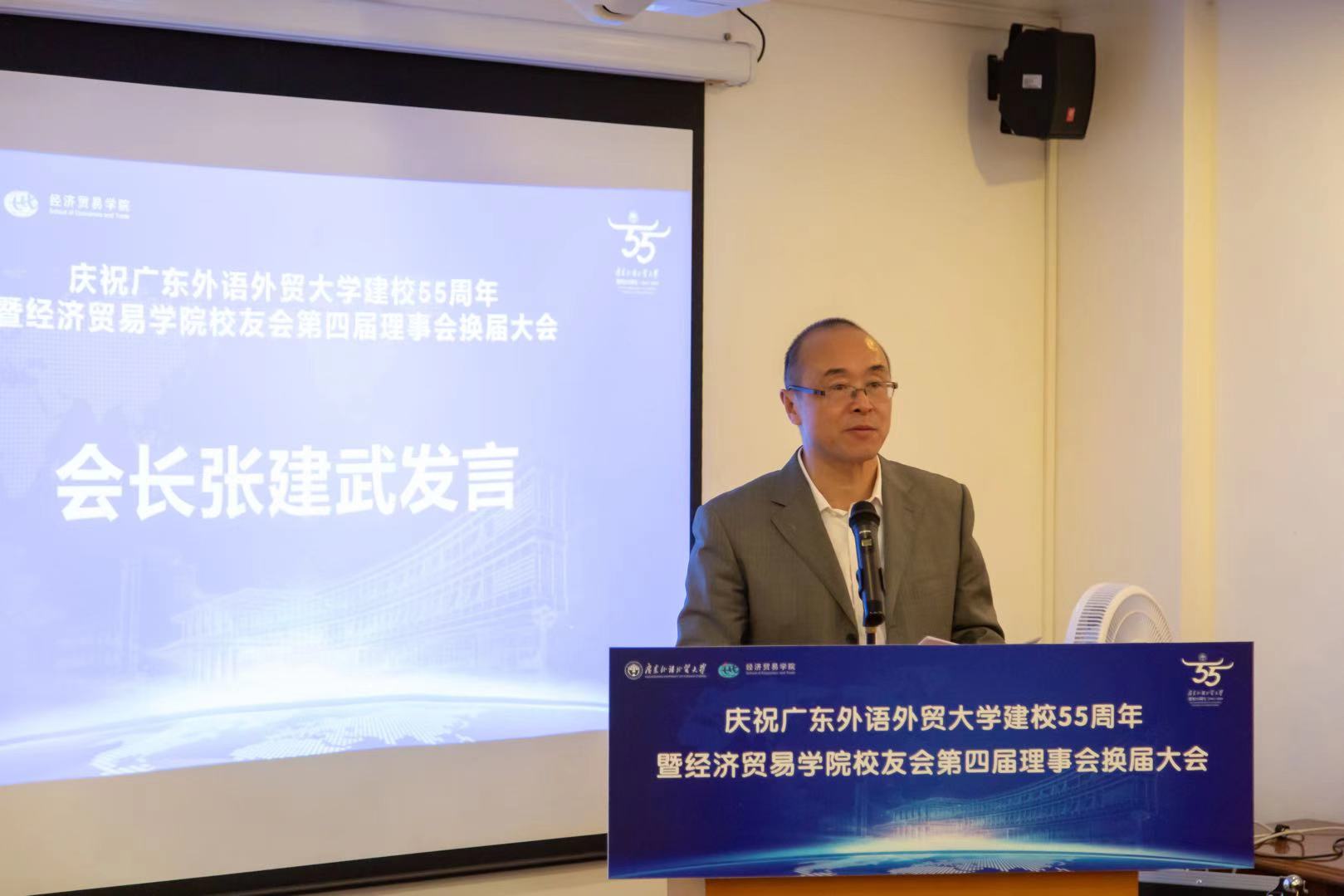 随后,梁洁组织审议通过并宣读了校友会章程与第四届理事会拟任名单,由何传添为经贸学院校友会授旗,为会长张建武等校友会新任理事颁发了聘书。张建武在发言中从学术成果、人才创新培养、校友建设等方面介绍了学院以及学院校友会近年的发展状况,他表示,学院已经取得的成就和将来要取得的成就,离不开广大校友的帮助和支持,衷心感谢全力付出的校友们。
